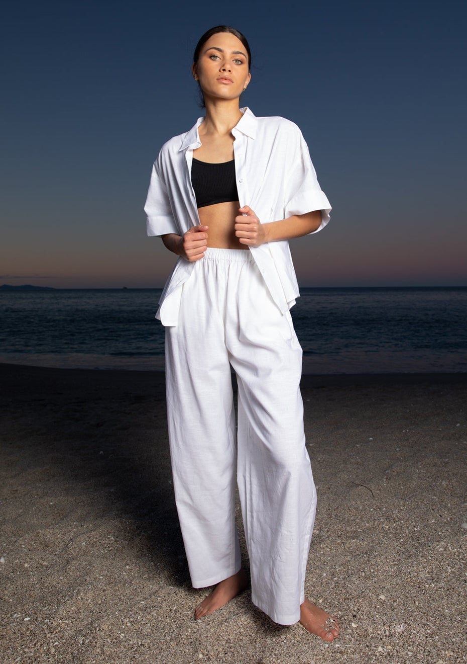 A new easy-to-wear relaxed pant that partners with our always popular Boyfriend Shirt... if you're into a set! Details + Crafted from 30% linen and 70% Cotton. + Wear as a set with the Boyfriend Shirt. + Relaxed, wide leg. + Elasticated waistband. + Side pockets.