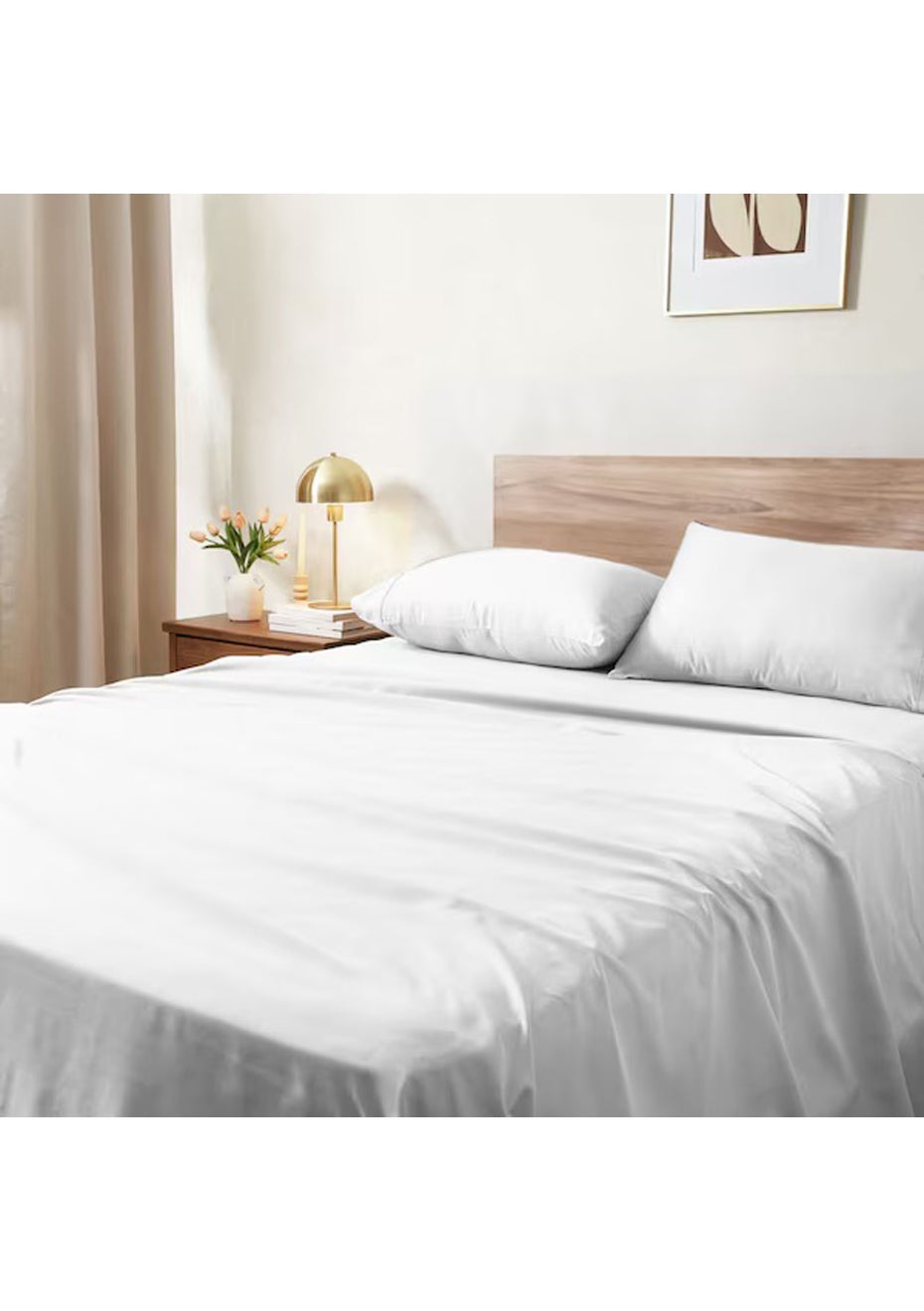 Catch some Z's in total comfort with a Sheraton 1200TC Cotton Rich Sheet Set White (Queen, King). Made with cotton and polyester, this sheet set is at once smooth, soft and incredibly comfy, and durable and easy to clean - not to mention stylish and elegant. Including 2 pillowcases, 1 fitted sheet and 1 flat sheet, you'll be able to experience the luxury of hotel-quality bed sheets from home! Specifications: 4 piece sheet set 1200 thread count Made with luxuriously soft cotton blend Easy to clean Detailed Specifications Colour: White Materials: 55% Cotton, 45% Polyester Sizes: Queen, & King Queen Dimensions Fitted Sheet: 203cm x 152cm x 40cm (HxWxD) Flat Sheet: 255cm x 260cm (HxW) Pillowcases: 48cm x 74cm x 15cm (HxWxD) King Dimensions Fitted Sheet: 203cm x 180cm x 40cm (HxWxD) Flat Sheet: 285cm x 260cm (HxW) Pillowcases: 48cm x 74cm x 15cm (HxWxD) Warranty: 12 month supplier warranty (Included) Package Contents 1 x Fitted Sheet 1 x Flat Sheet 2 x Pillowcases
