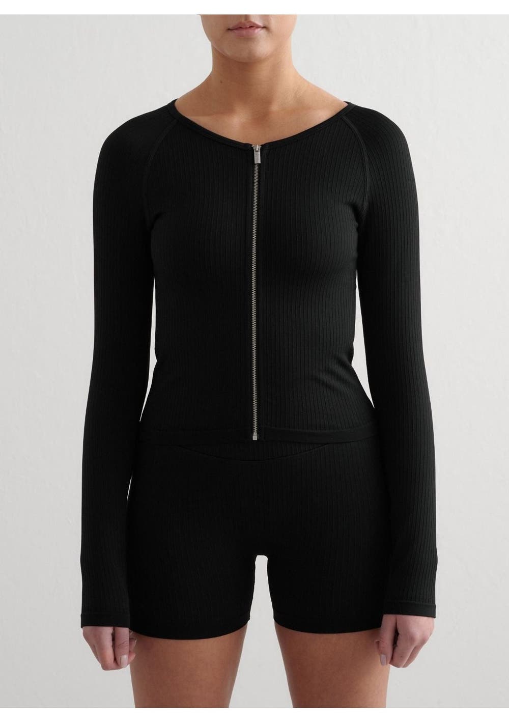 Black Ribbed Seamless Zip Jacket