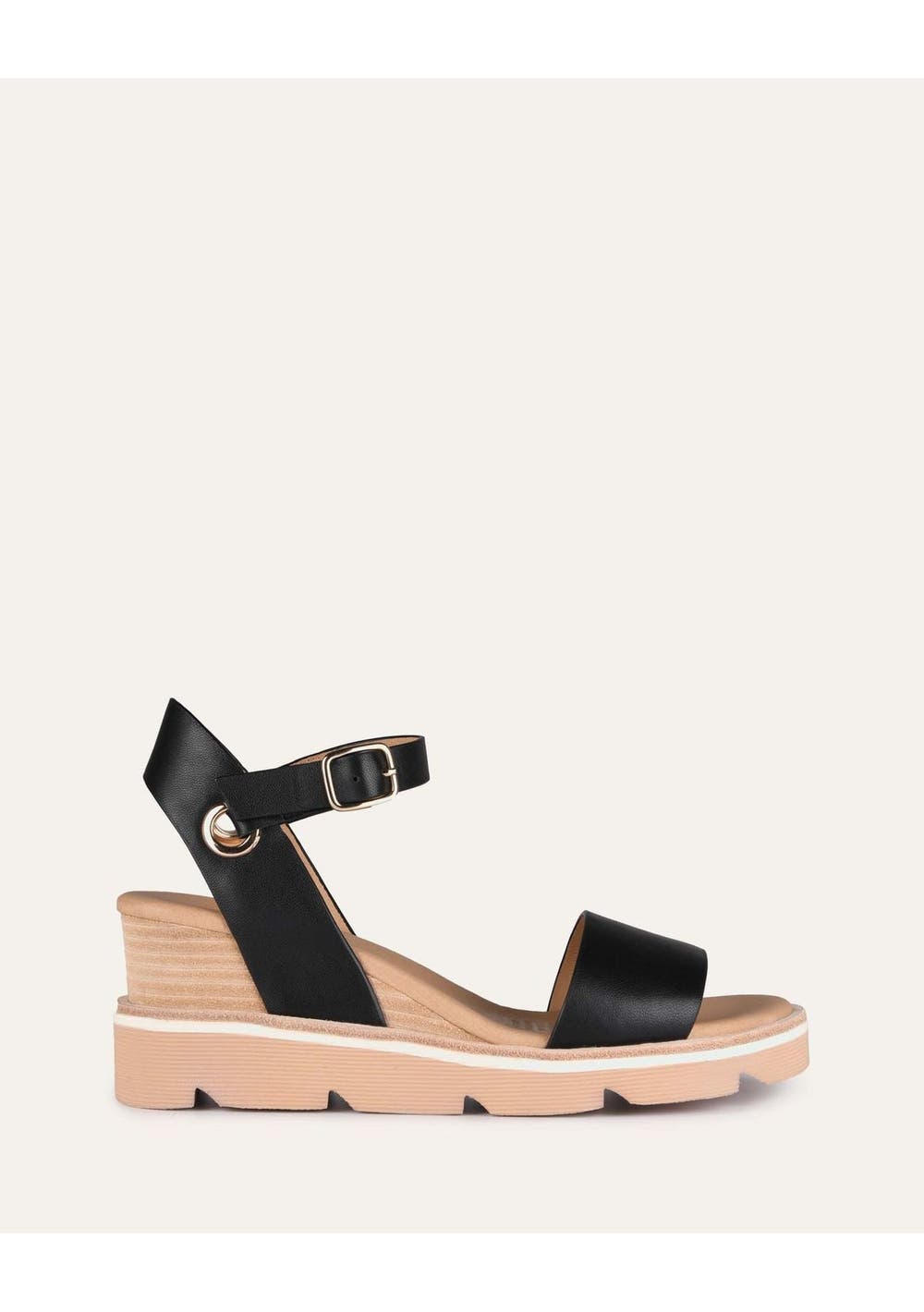 Jo Mercer - Katie Mid Heel Wedge Sandals Black Leather