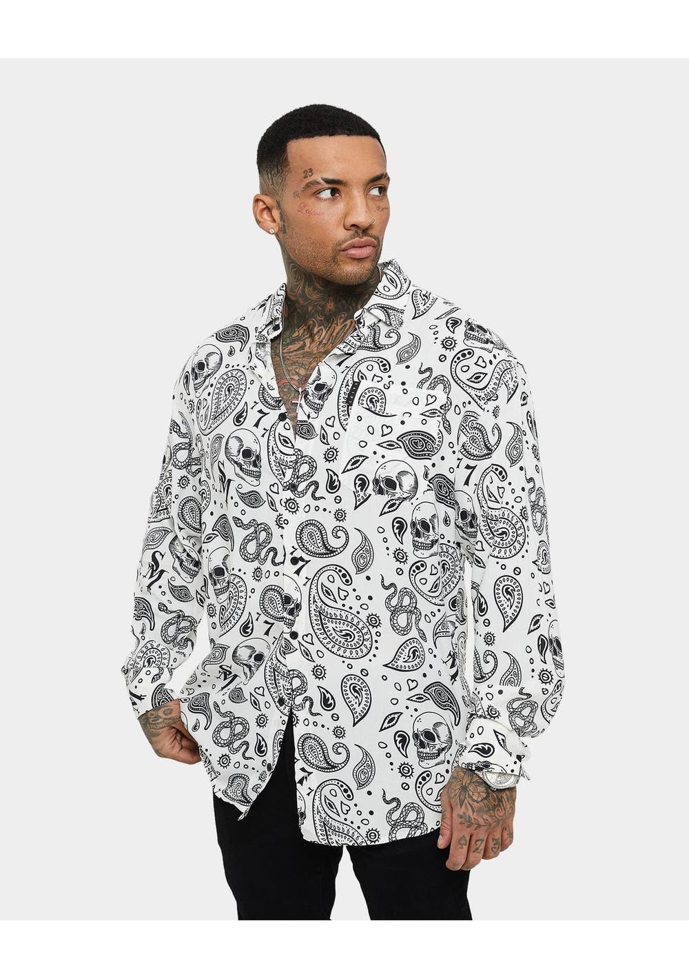 Saint Morta Paisley Skulls Long Sleeve Button Up Shirt White/Black