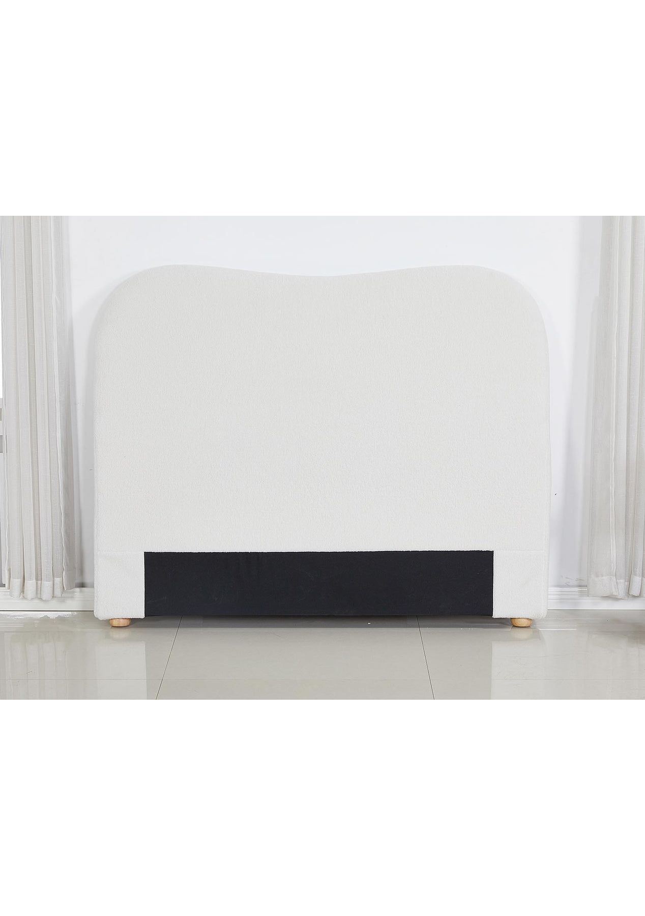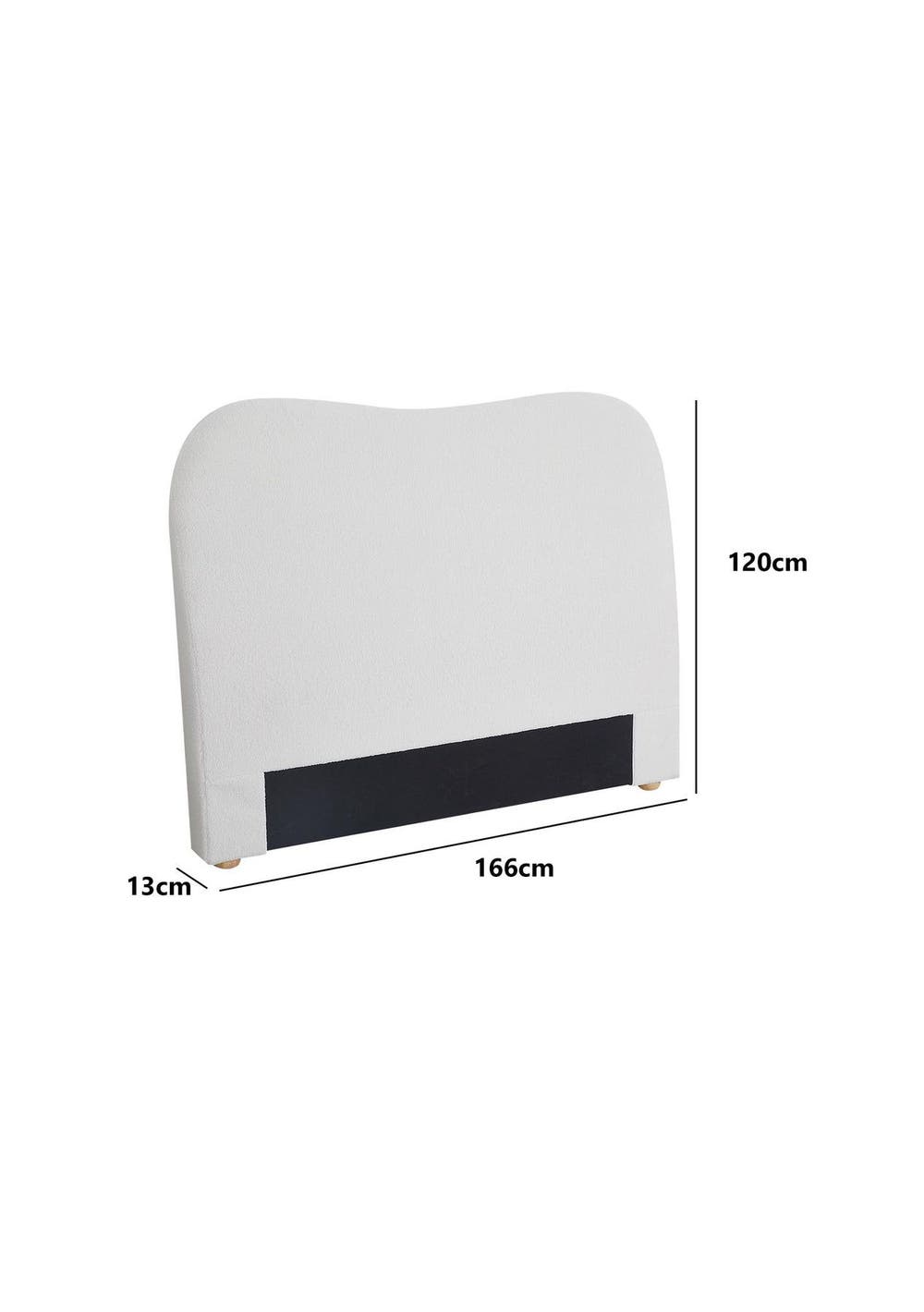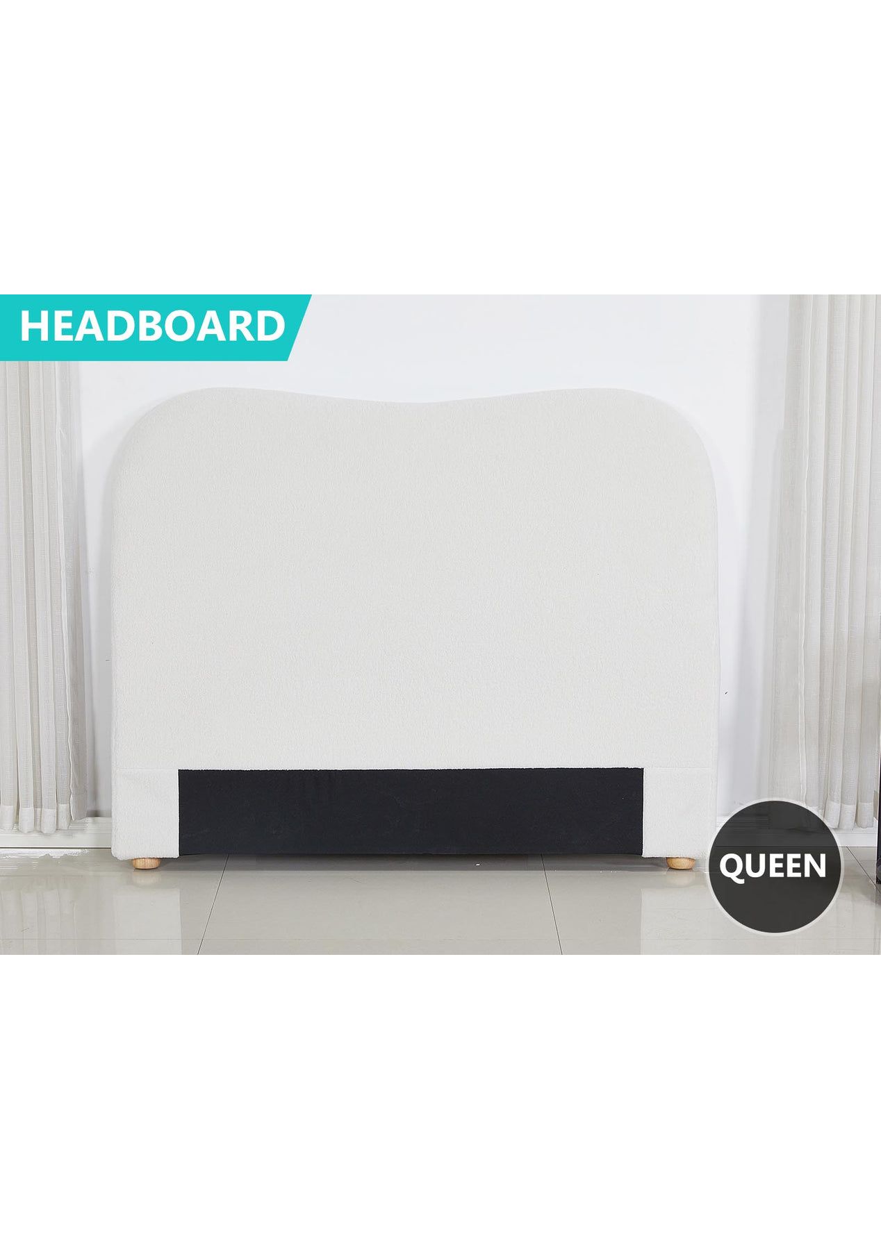 PR9001- Alva Boucle Headboard Queen White Description:At first sight, you will be impressed by how lovely this boucle headboard literally looks. Wrapped in premium boucle fabric, our elegant headboard features a contemporary design that stands for timeless chic. Inside, it is richly padded with high-density foam to lend a comfortable and plush feel when relaxing on it. A trait that you will surely appreciate when you rest on it to read, surf the net or watch a movie on your device. Built with the solid wood legs, our sturdy and elegant headboard is definitely an outstanding addition to your bed. FeaturesPremium boucle fabric upholsteryReinforced wooden constructionPadded with high-density foamSturdy frameworkSmooth finished edgesSolid wood legsFits a standard queen-sized bedEasy assemblySpecificationsMaterial: dacron boucle fabric + foam + woodColour: whiteDimension: 166x120x13cm Packaging Dimensions: 170x119x15CM