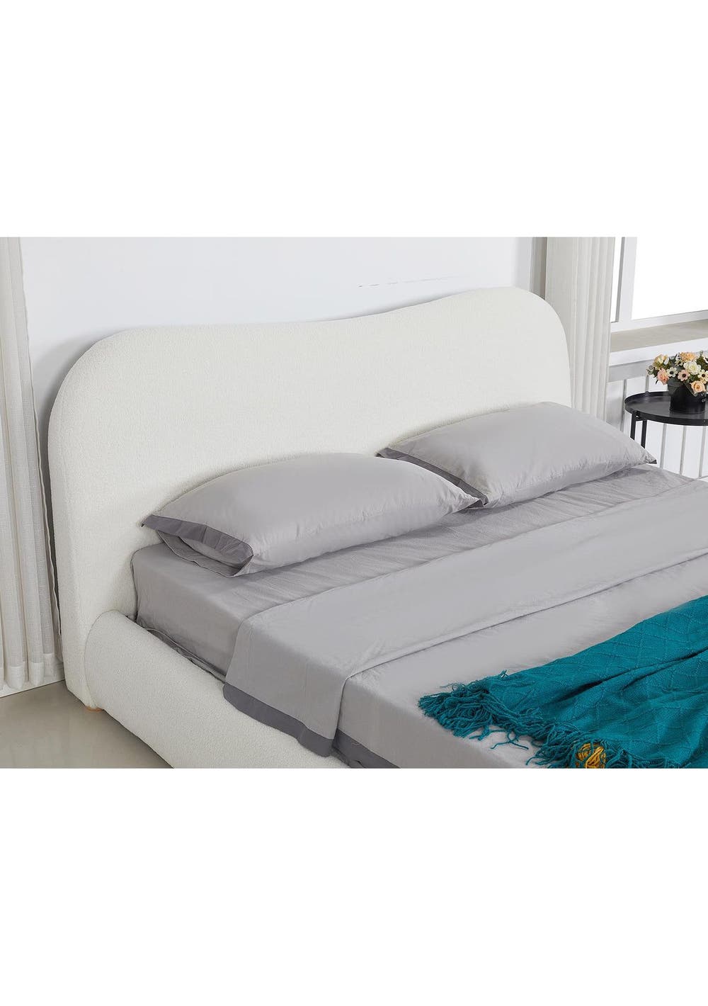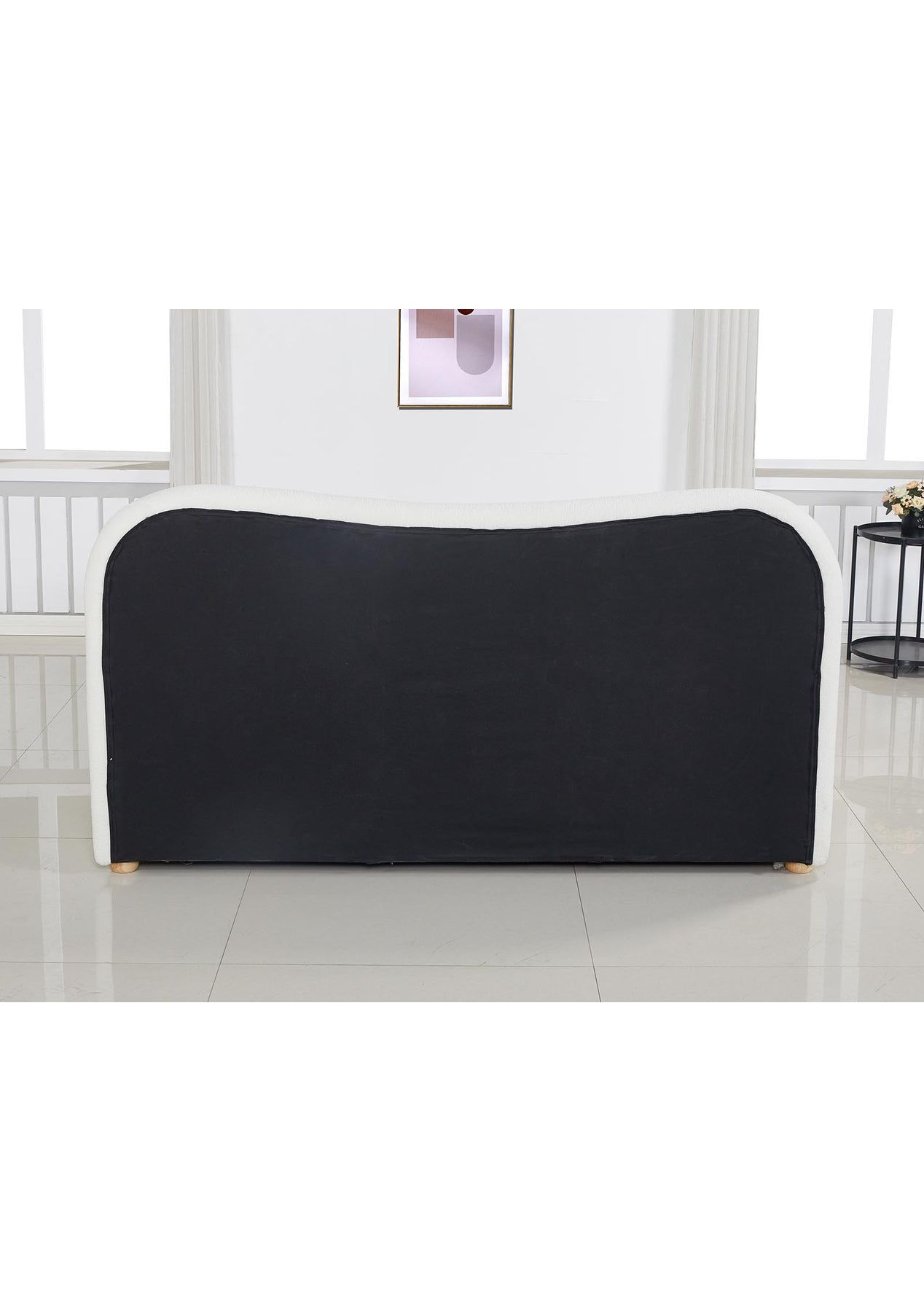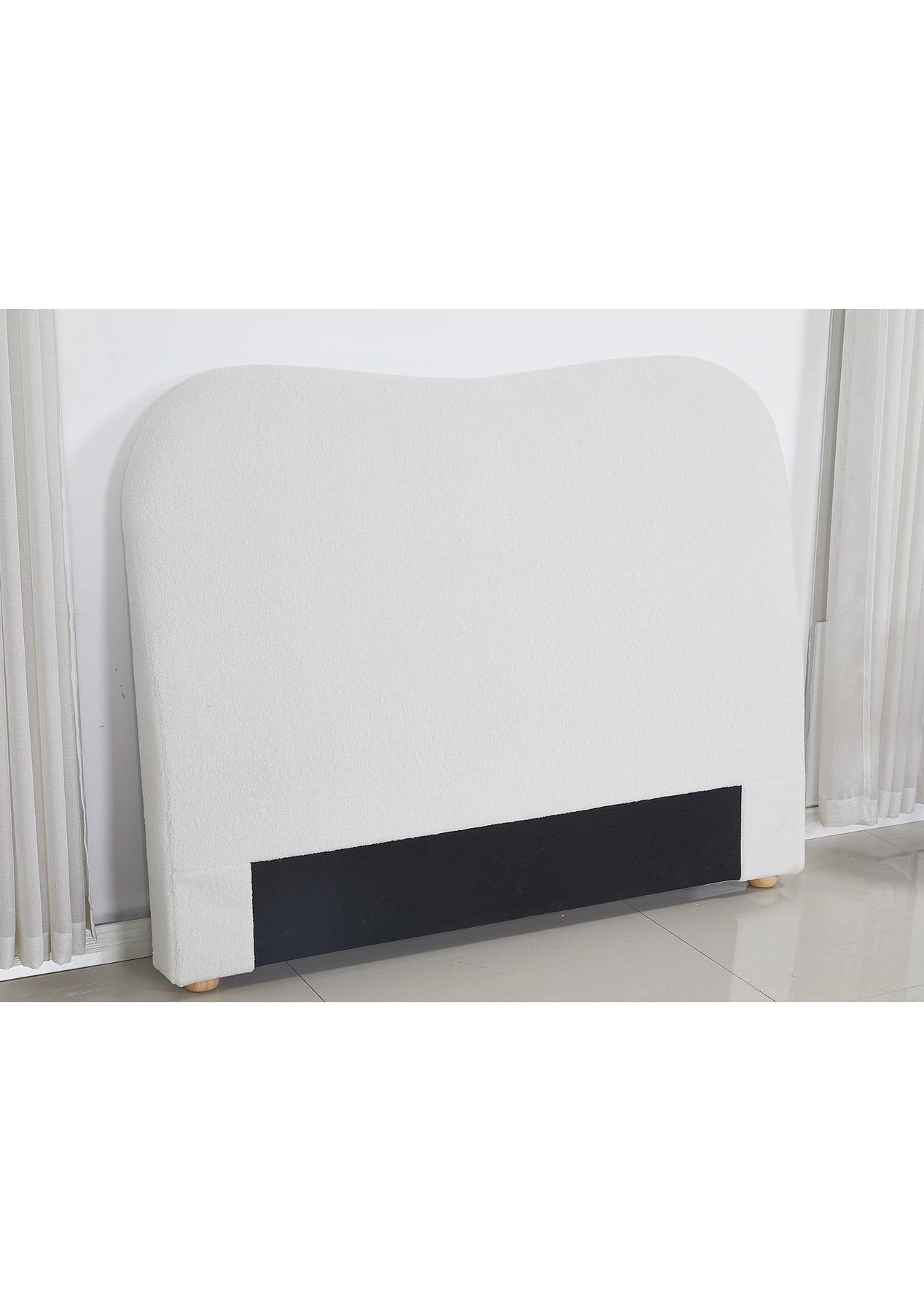 PR9001- Alva Boucle Headboard Queen White Description:At first sight, you will be impressed by how lovely this boucle headboard literally looks. Wrapped in premium boucle fabric, our elegant headboard features a contemporary design that stands for timeless chic. Inside, it is richly padded with high-density foam to lend a comfortable and plush feel when relaxing on it. A trait that you will surely appreciate when you rest on it to read, surf the net or watch a movie on your device. Built with the solid wood legs, our sturdy and elegant headboard is definitely an outstanding addition to your bed. FeaturesPremium boucle fabric upholsteryReinforced wooden constructionPadded with high-density foamSturdy frameworkSmooth finished edgesSolid wood legsFits a standard queen-sized bedEasy assemblySpecificationsMaterial: dacron boucle fabric + foam + woodColour: whiteDimension: 166x120x13cm Packaging Dimensions: 170x119x15CM