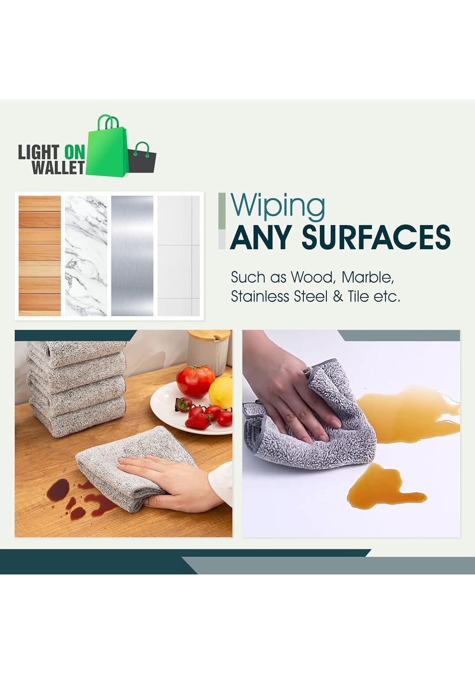 Superior Absorption: Made from premium microfiber, these towels are designed to soak up to 13 times more water than traditional cotton, making them perfect for drying and cleaning any kitchen mess.