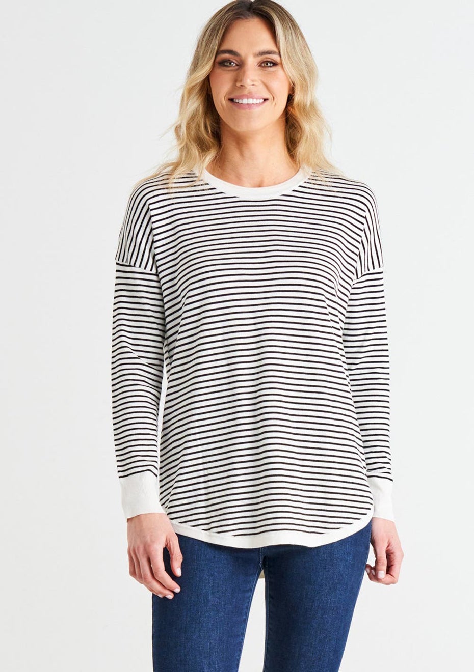 Betty Basics - Sophie Knit Jumper - White/Black Stripe