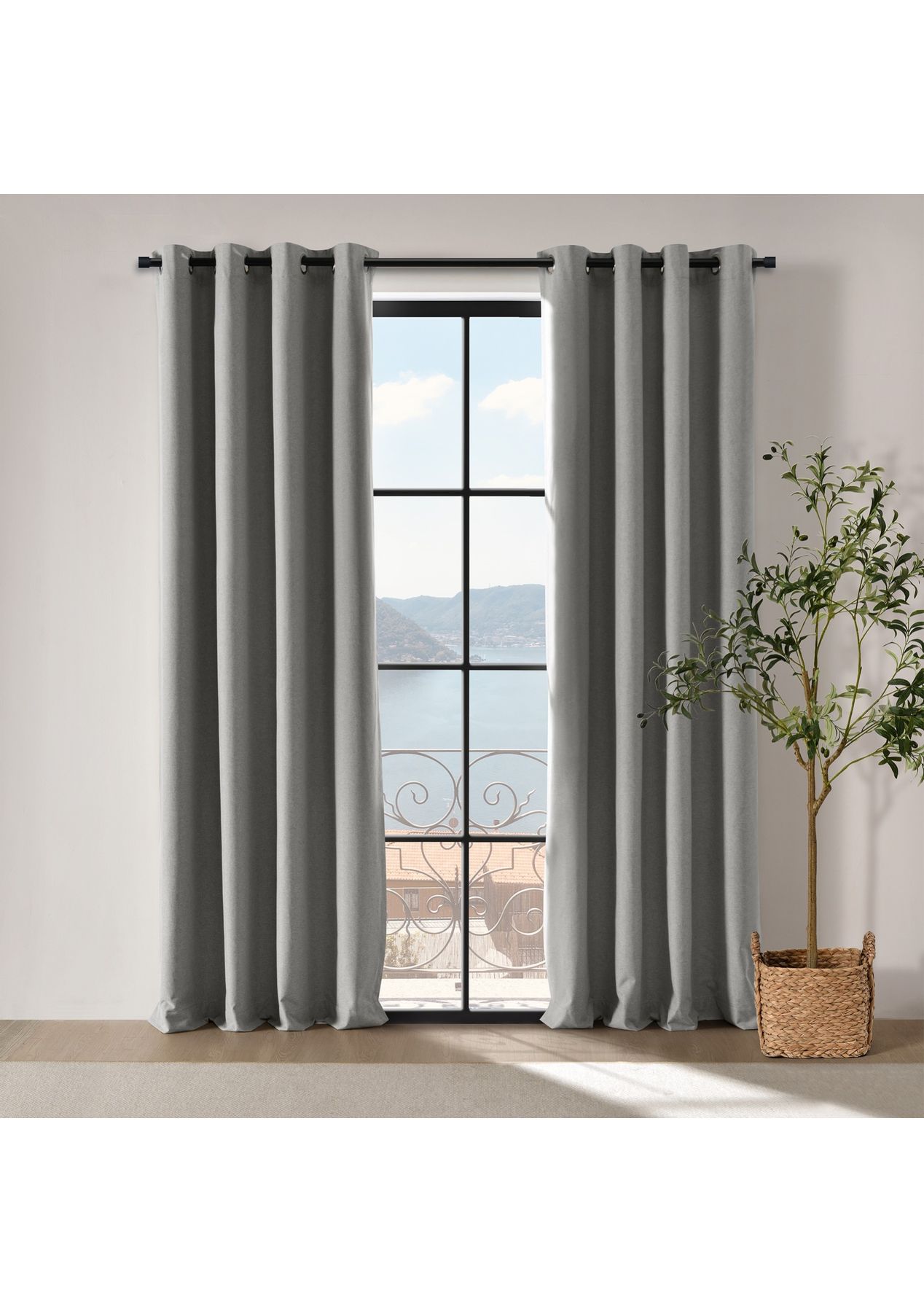 Cadence & Co. Bennett Faux Linen Blockout Eyelet Curtain 135x223cm Twin Pack Steel