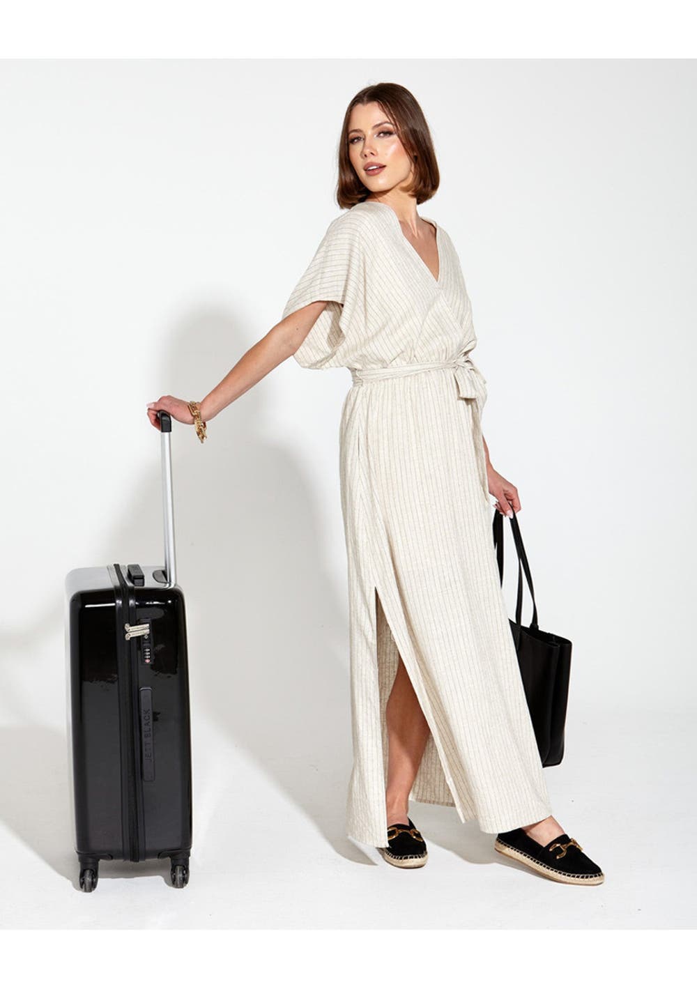 Fate - Heritage Linen Maxi Dress - Nautral Pinstripe