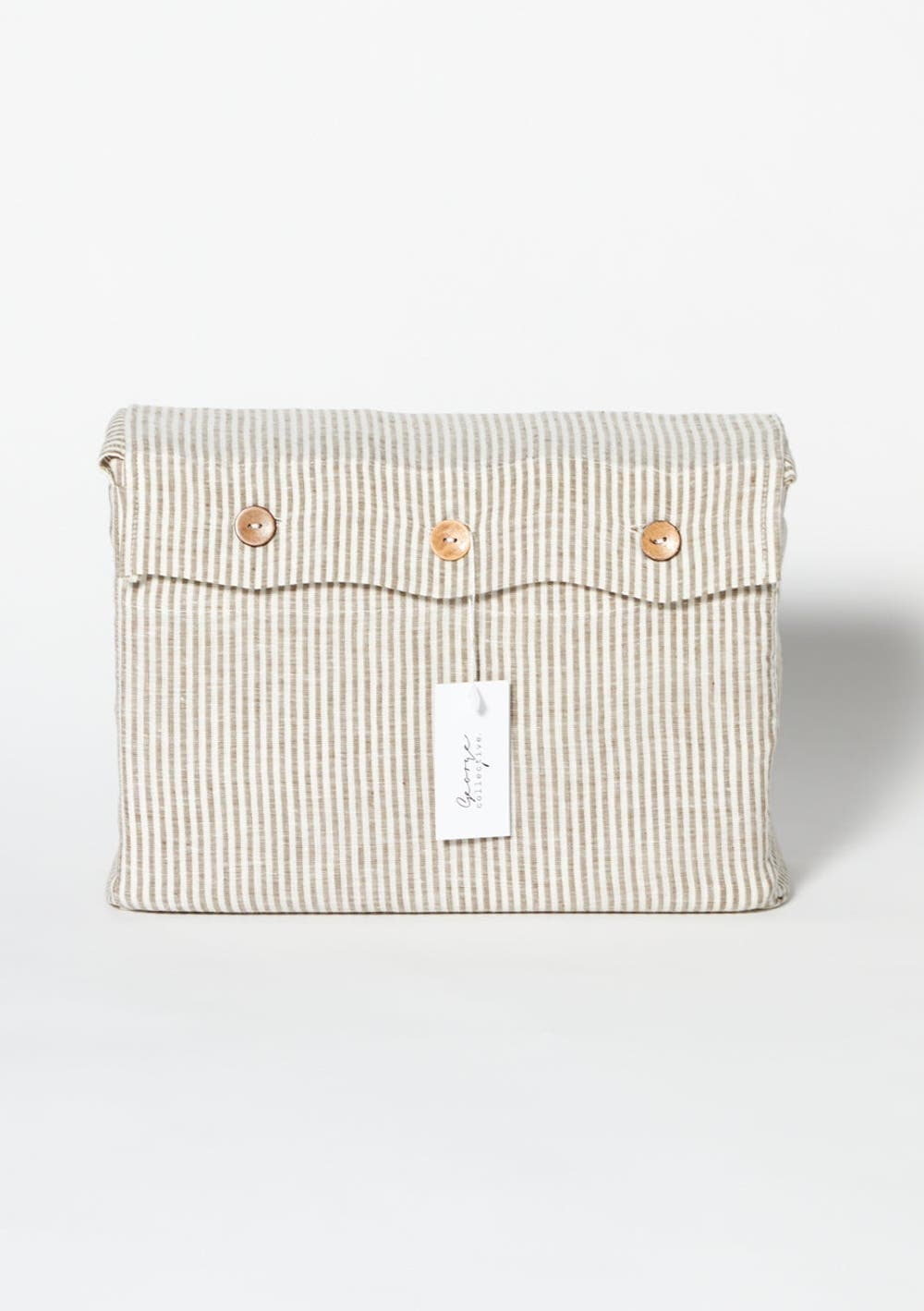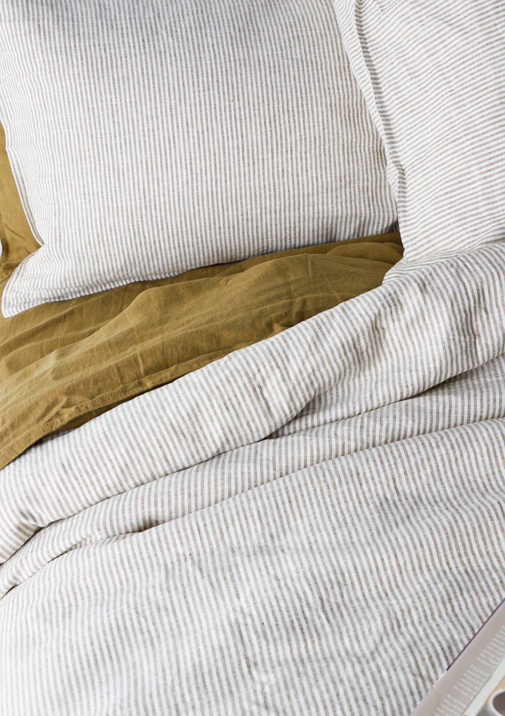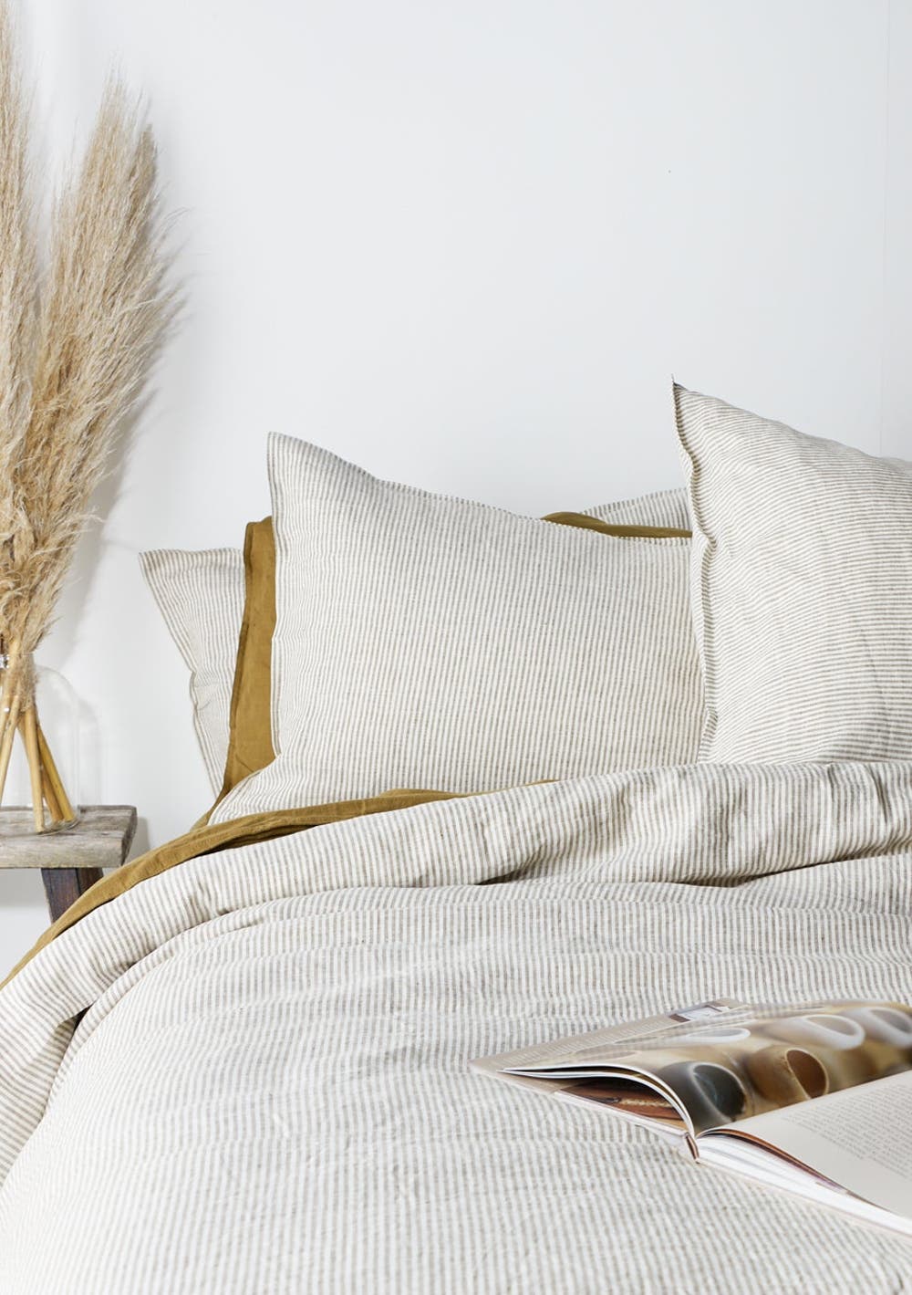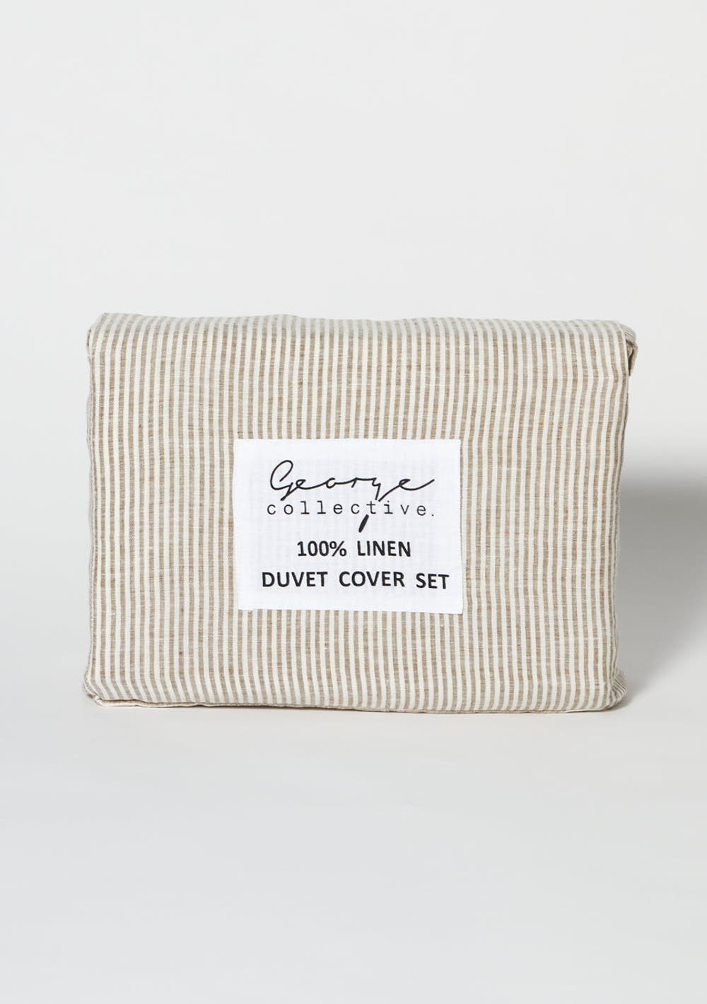 George Collective - 100% French Linen Duvet Cover Set - Super King - Olive Stripe