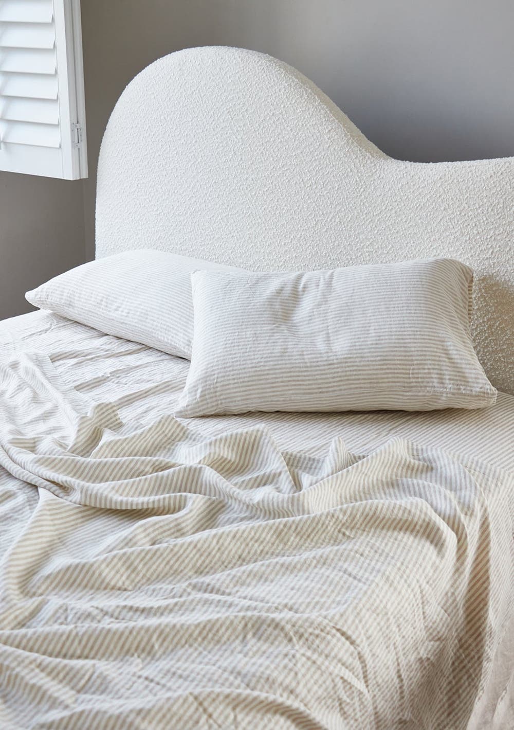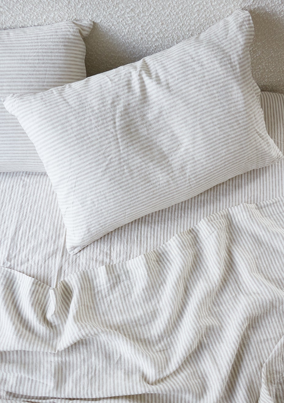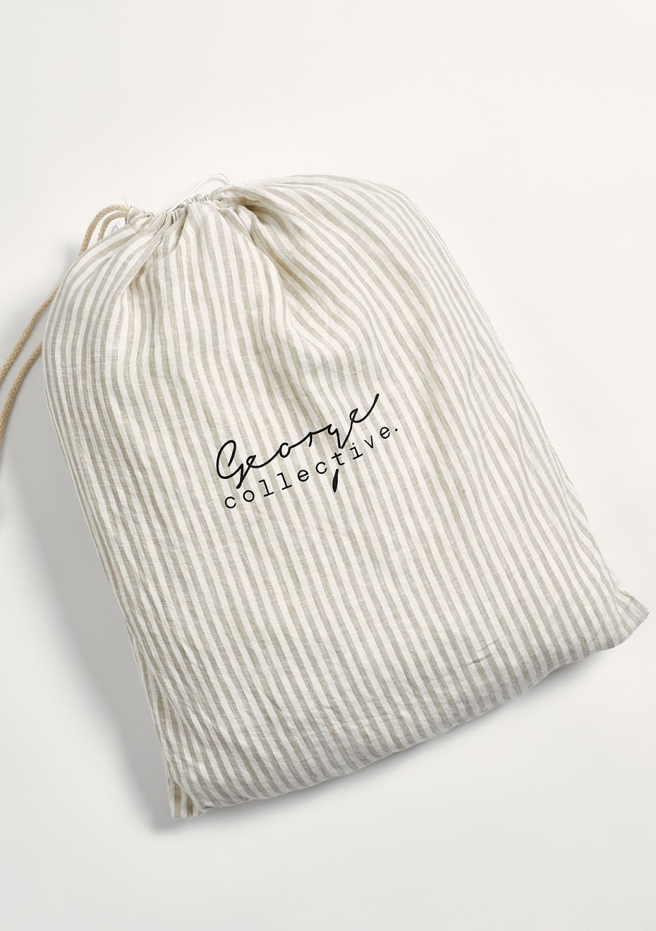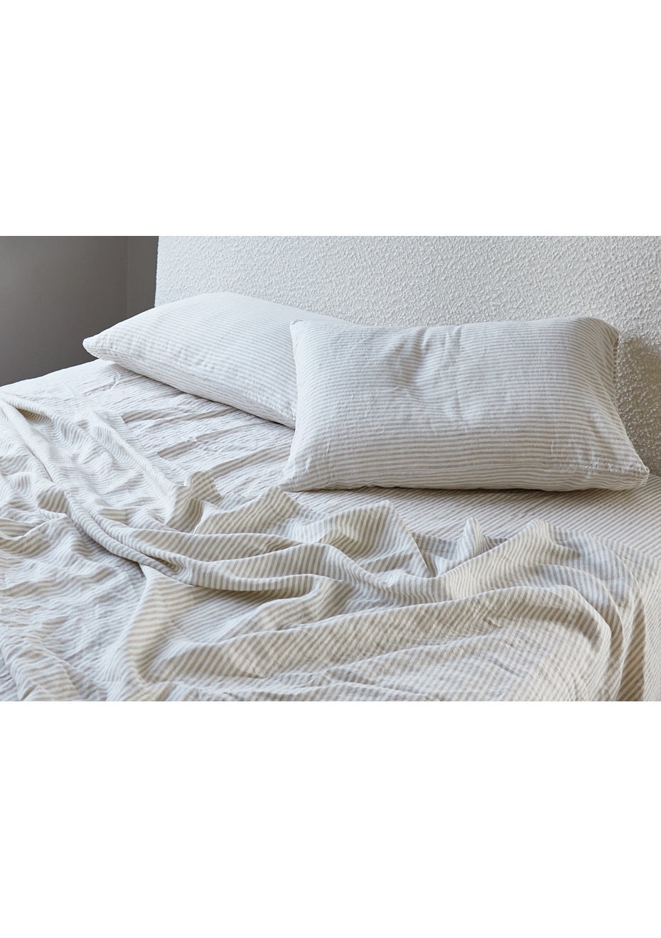George Collective - 100% French Linen Sheet Set - Queen - Natural Stripe